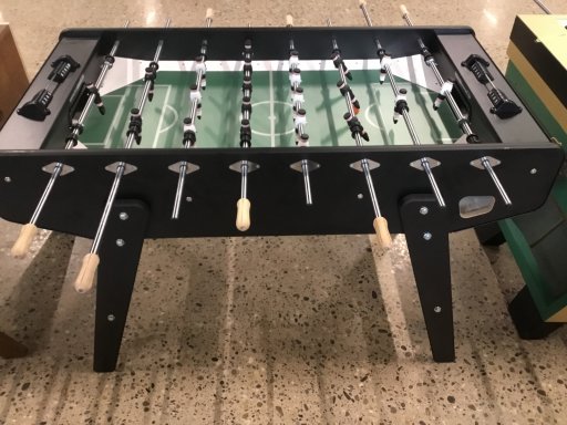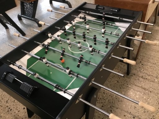 -deze tafelvoetbal is eenvoudig te demonteren: de poten kunnen er makkelijk afgeschroefd worden om zo de tafelvoetbal zonder poten door een deuropening te dragen