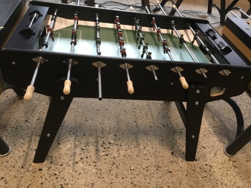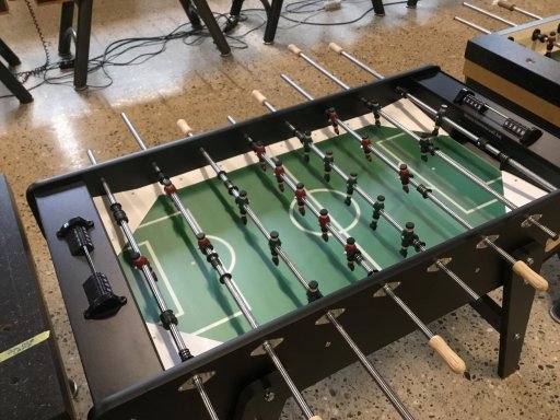 -deze tafelvoetbal is eenvoudig te demonteren: de poten kunnen er makkelijk afgeschroefd worden om zo de tafelvoetbal zonder poten door een deuropening te dragen