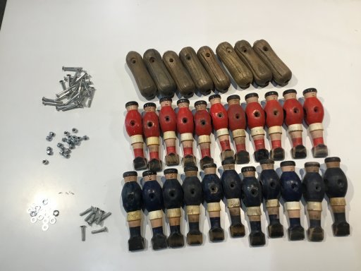 -doordat wij vele tafelvoetballen restaureren en daar dan veel nieuwe onderdelen op plaatsen hebben wij een ruime voorraad aan 2dehands onderdelen, ideaal als je je tafelvoetbal wil opmaken en je niet allemaal nieuwe onderdelen wil kopen.
