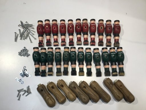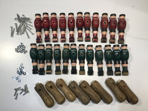 -doordat wij vele tafelvoetballen restaureren en daar dan veel nieuwe onderdelen op plaatsen hebben wij een ruime voorraad aan 2dehands onderdelen, ideaal als je je tafelvoetbal wil opmaken en je niet allemaal nieuwe onderdelen wil kopen.